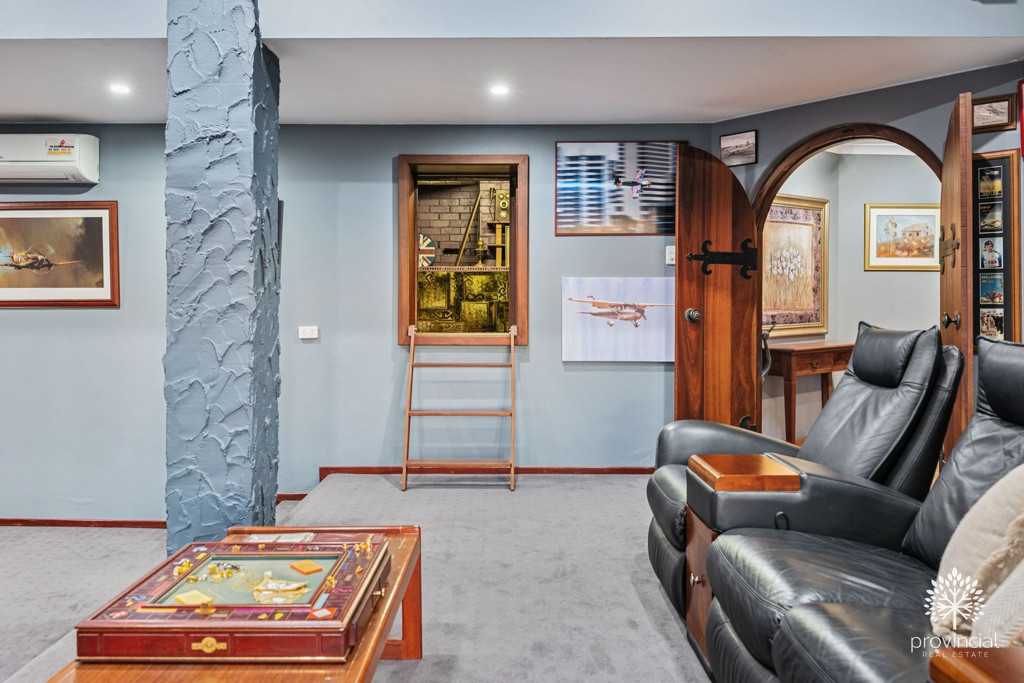 • Huge split-level theatre and games room with HD projector and surround sound, r/c split system, electric fireplace, and wet bar