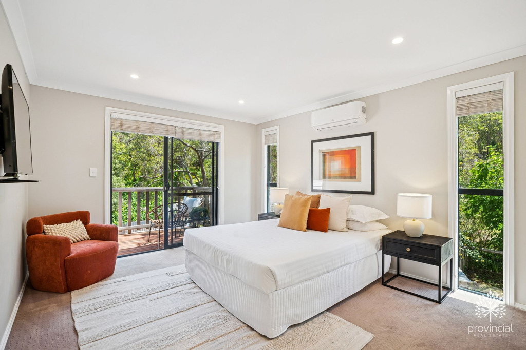 • Well-separated primary suite with private balcony, large WIR, ensuite with full height large-format tiles, spa bath, dual vanity, plus r/c split system
