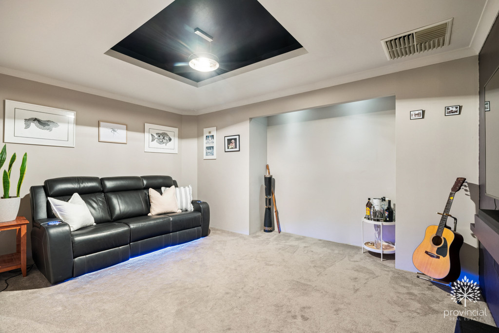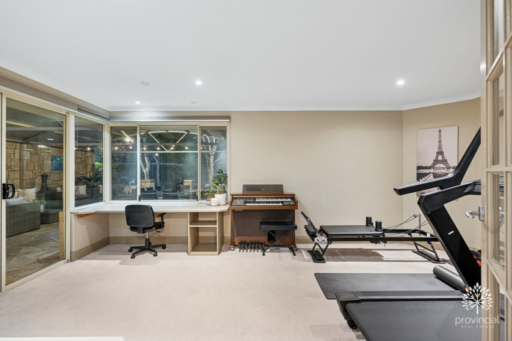 • Huge step-down secondary living area, with built-in desks, and alfresco access, currently used as gym and music room. Perfect for a playroom or rumpus