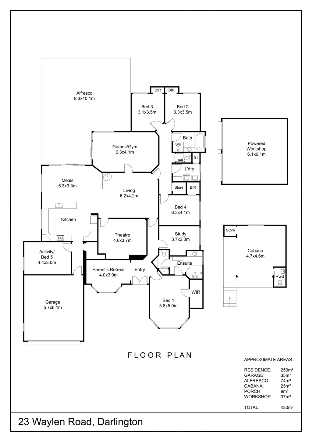 • Fully enclosable, elevated poolside cabana with powder room and storage cupboard, currently used a games room, and perfect for a studio, gym, or teenagers' retreat