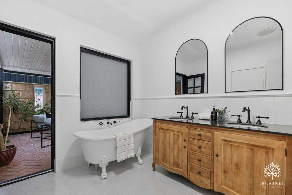 • Primary suite with generous WIR, ensuite with claw foot bath, oversized shower, dual vanity, and separate w/c, opening onto a private courtyard with water feature