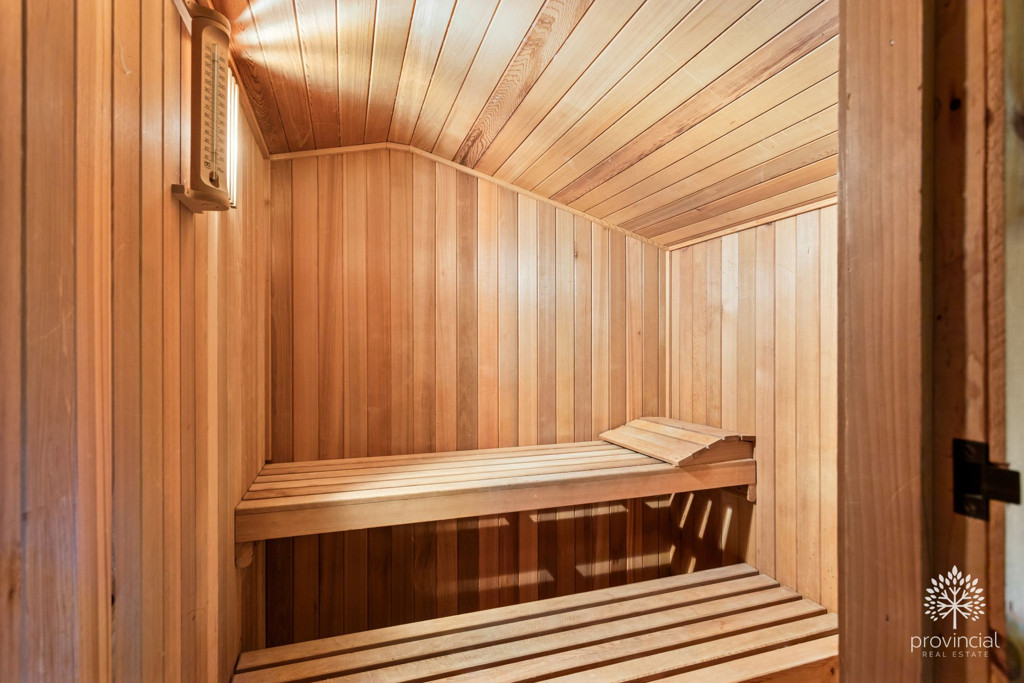 Huge elevated rear entertaining deck with cedar lined ceiling