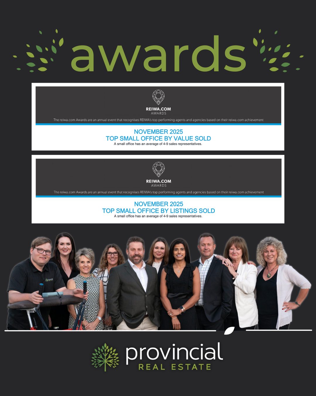 We’re excited to share that Provincial Real Estate has been recognised in the reiwa.com Monthly Awards for November 2025 — placing among WA’s top-performing small offices for: